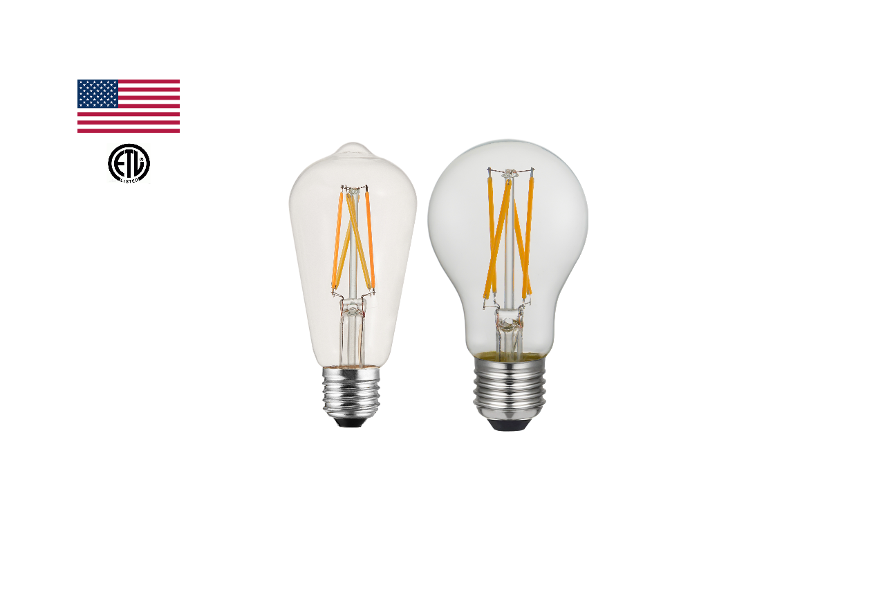 Designed for the U.S. market with full ETL certification, our ST64 and A60 LED filament bulbs deliver reliable performance, high efficiency, and timeless clear-glass styling for a wide range of lighting applications.